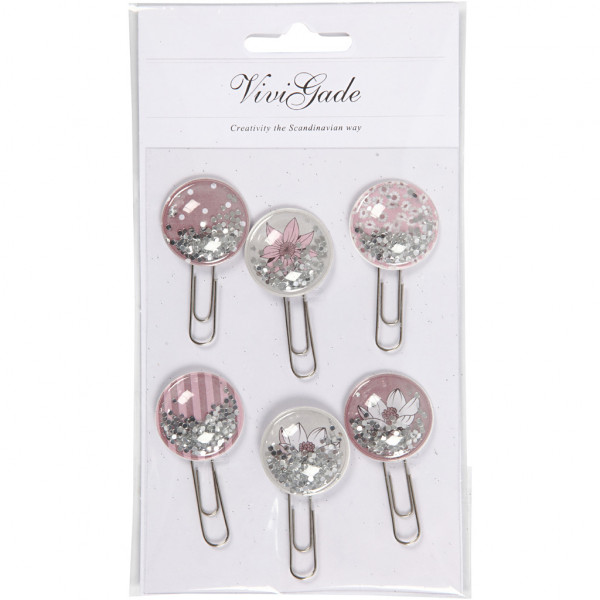 Silver-plated metal clip from Vivi Gade with round-mounted plastic decoration with loose circular arrows that can be shaken.