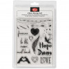 Sheets with different motives in transparent adhesive raised silicone. Mounted on an acrylic block (item no. 24010 and 24009) and used as a stamp.