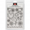 Sheets with different motives in transparent adhesive raised silicone. Mounted on an acrylic block (item no. 24010 and 24009) and used as a stamp.