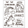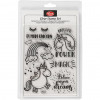 Sheets with different motives in transparent adhesive raised silicone. Mounted on an acrylic block (item no. 24010 and 24009) and used as a stamp.