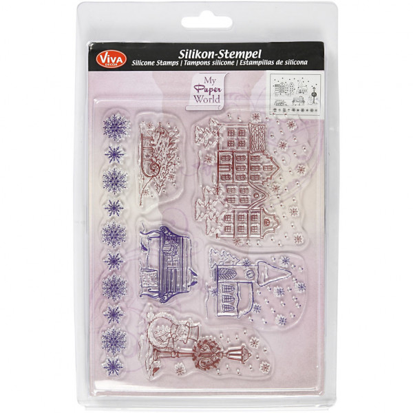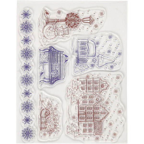 Sheets with different motives of transparent silicone. Mounted on acrylic block (item no. 24010 and 24009) and used as a stamp.