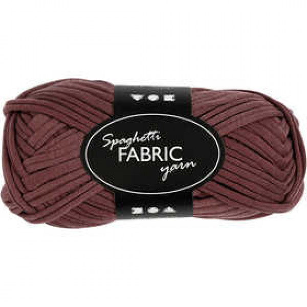 Spaghetti yarn is knitted band yarn in 100% polyester. The fabric yarn is particularly suitable for heavy knitting or crochet of pads, blankets, puffs, bags, etc. 11 sts x 16 sts = 10 x 10 cm on needle size 7-8. Wash at 30 ° C.
