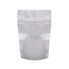 Measuring 102x60x152mm, this rice paper pouch is ideal for packaging non-refrigerated items like candies, salts, sprinkle mixes and more. Stand Up Zipper Pouches feature a self-supporting pouch design that makes them perfect for retailer's shelves. The fiber pattern on this shiny silver bag gives it an earthy feel, while providing a more upscale look than a traditional paper pouch. ZBGR2S has usable space that measures 90 x 50 x 120mm and holds 57 g of dry goods (based on whole coffee beans). The resealable zipper will help keep products fresh, while the clear rectangular window on the front will show off products. Heat seal using a standard hand sealer to provide a tamper resistant closure. Tear notches are located above the zipper for convenient access once sealed closed.