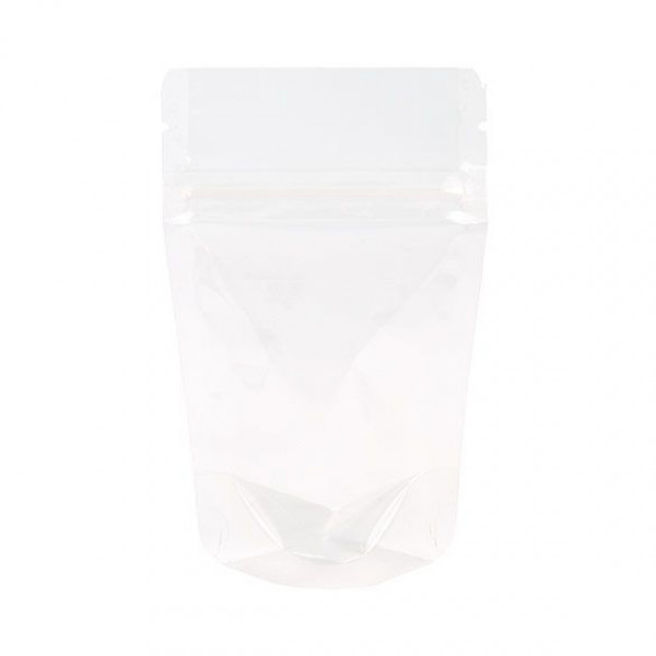 Do you need a sturdy stand up pouch for dry goods packaging? The ZBGCC1 is our crystal clear stand up zipper pouch that measures 79 x 51 x 130 mm. The usable space measures 68 x 44 x 95 mm. This flexible, resealable pouch is perfect for holding products like coffee beans, chips, grains, candy, detergent pods, pet food, and more. Constructed with 4 mil thick laminated material for extra strength and barrier, this pouch can be depended upon for large-volume quantities. This pouch offers high barrier protection against moisture, odors, and oxygen for optimal product freshness. An airtight zipper ensures a secure closure, while tear notches offer an easy opening when heat sealed. Food safe.