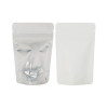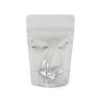 Create an eye-catching display with this White Stand Up Zipper Pouch with a silver interior and clear front panel design. This 80 x 50 x 130mm food safe pouch holds 28 grams (based on whole coffee beans), perfect for packaging coffee, teas, powdered mixes, dried fruit, sea salts, and more. Built-in barrier protection keeps aromas and flavors in, so your product stays fresh. ZBGW1 features a clear front panel that runs the full length of the bag to prominently display your contents. Popular for their airtight zippers and self-supporting design, these pouches are also heat sealable. Tear-away notches provide convenient access when heat sealed. Great for niche products.