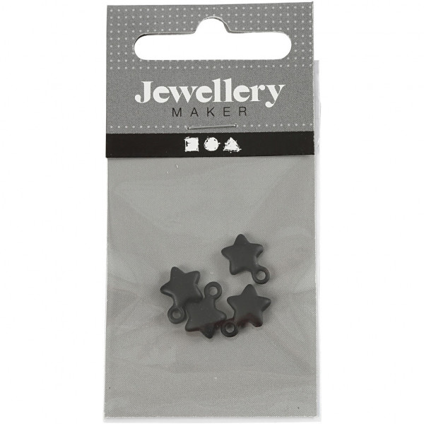 Star, D: 8 mm, hole size 1 mm, 4 pcs, black [HOB-60590]