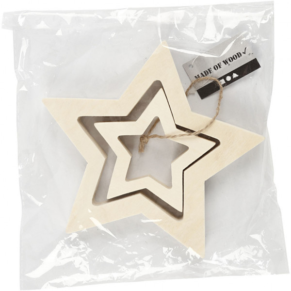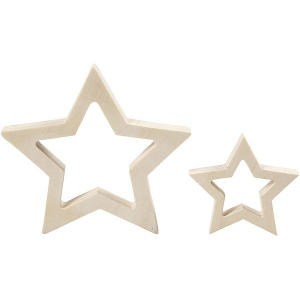Set of two stars of light wood in various sizes.