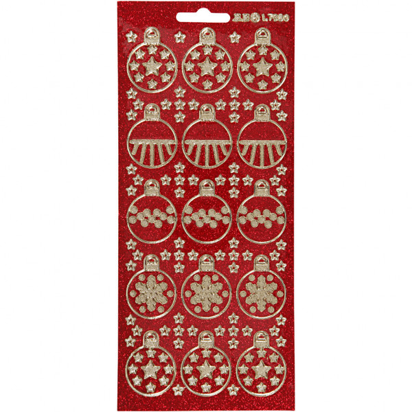 Stickers, sheet 10x23 cm, 1 sheet, gold, red glitter [HOB-170051]