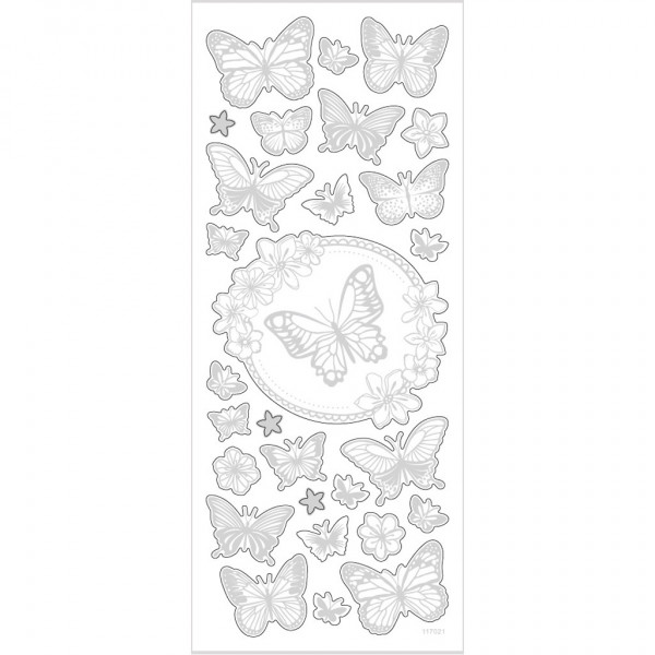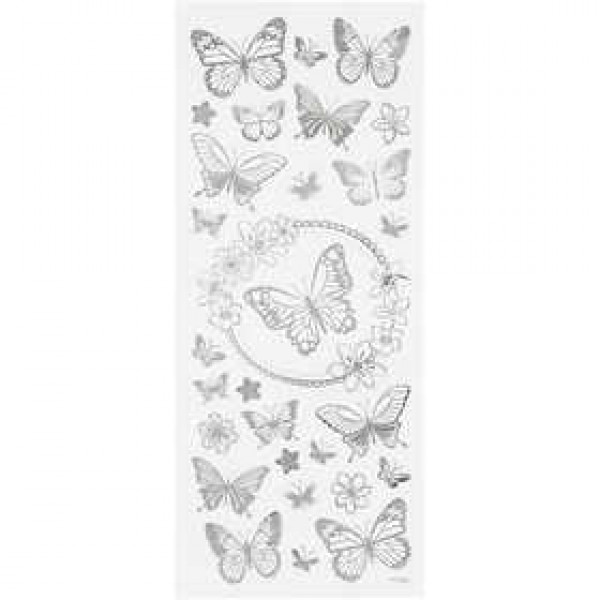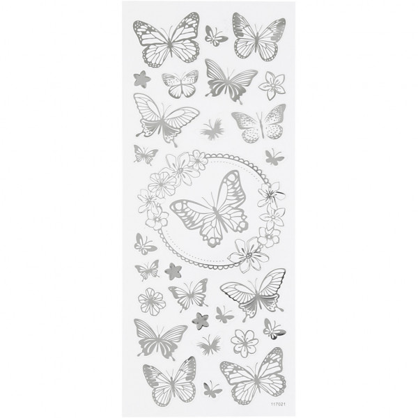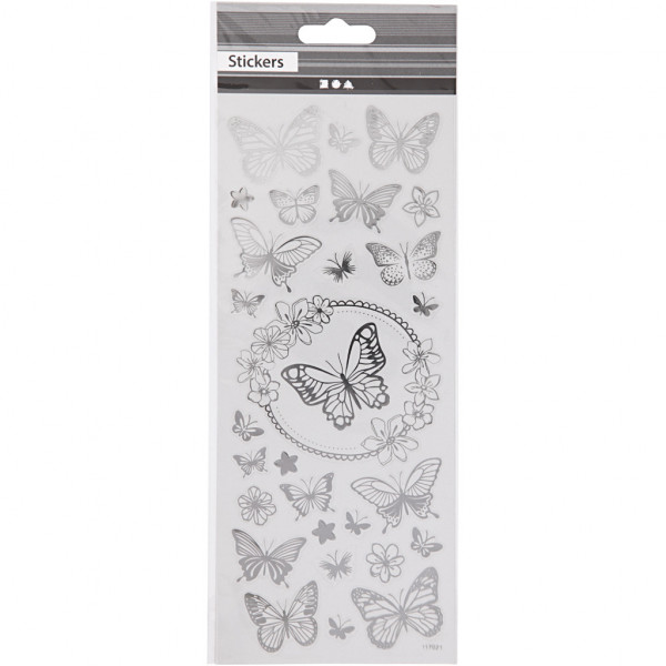 Stickers, sheet 10x24 cm, approx. 28 pc, 1 sheet, silver [HOB-29143]