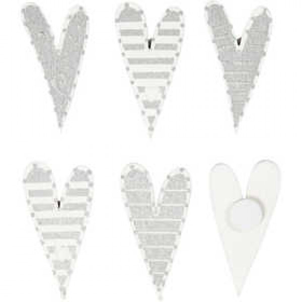 Adhesive woodstickers in elegant silver and white shades. Pack. with 4 design a 2 pcs.