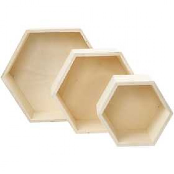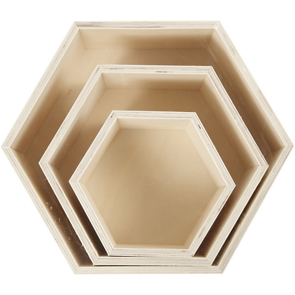 Storage Boxes, H: 14.8+19+24.2 cm, depth 10 cm, 3 pcs, plywood [HOB-56430]