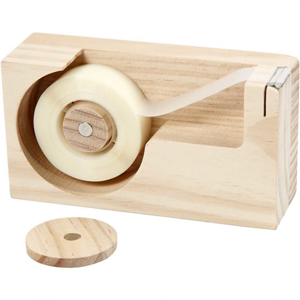 Tape dispenser of light wood to tape (max. B: 2.50 cm).