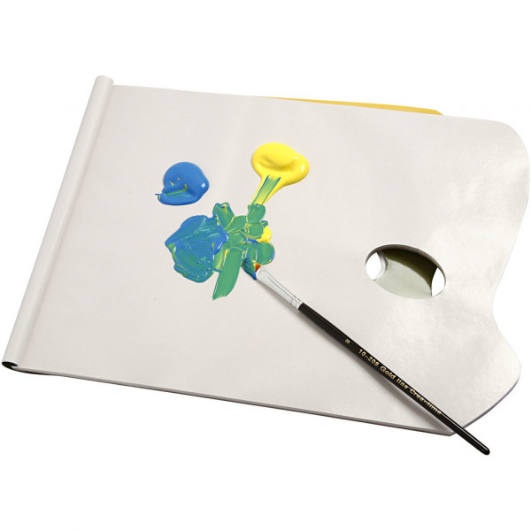 Palette in the form of a book with waxed paper sheets and special thumbholes. 40 sheets to tear out.