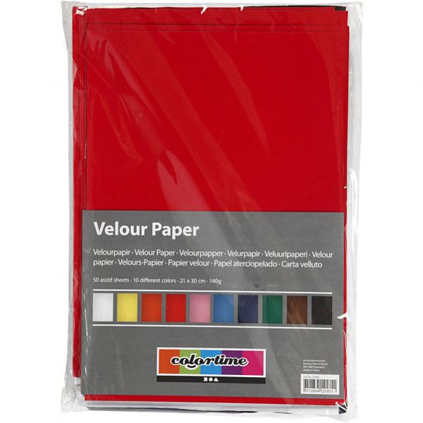 Velour Paper, A4 21x30 cm, 140 g, 50 sheets, asstd. colours [HOB-27069]