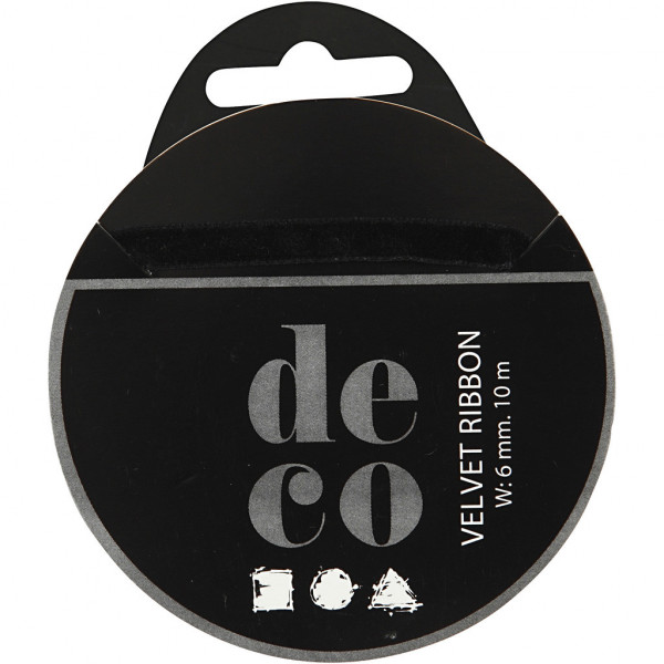 Velvet Ribbon, W: 6 mm, 10 m, black [HOB-51304]