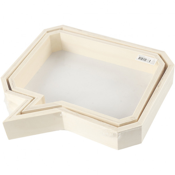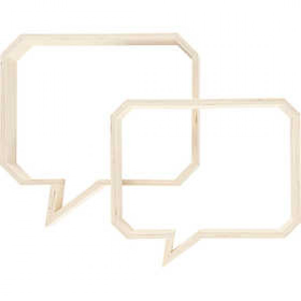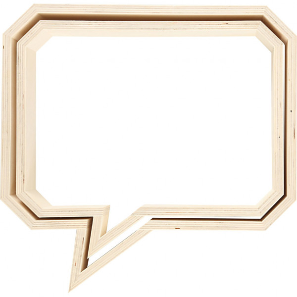 A slim wooden wall decoration in the shape of a speech balloon. Set of two sizes.
