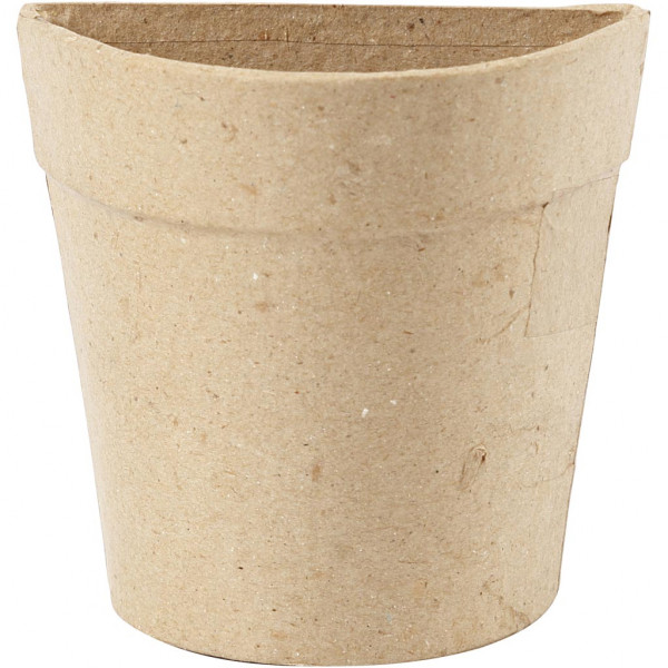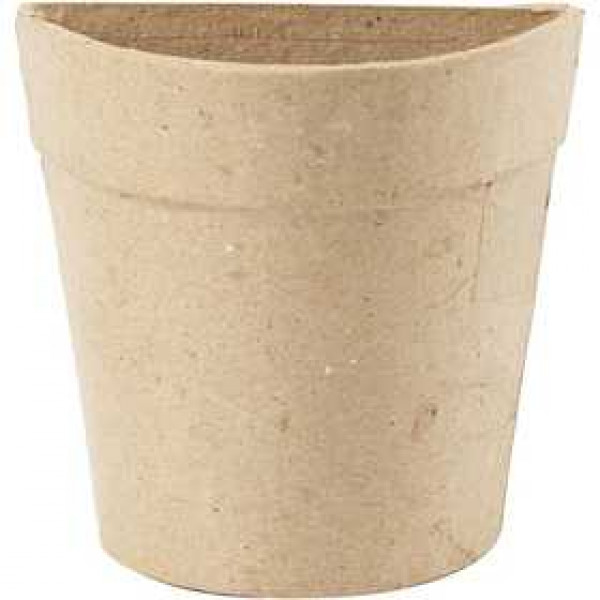 Handmade wall pot of papier-mâché with flat back.