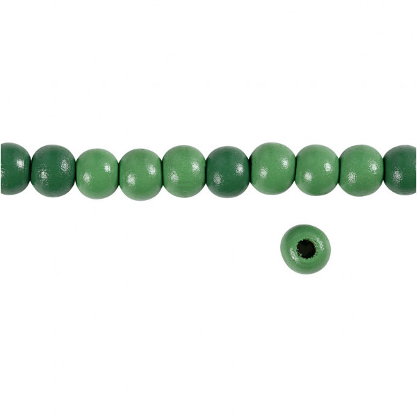 Wooden Beads, D: 10 mm, hole size 3 mm, 20 g, green [HOB-570597]