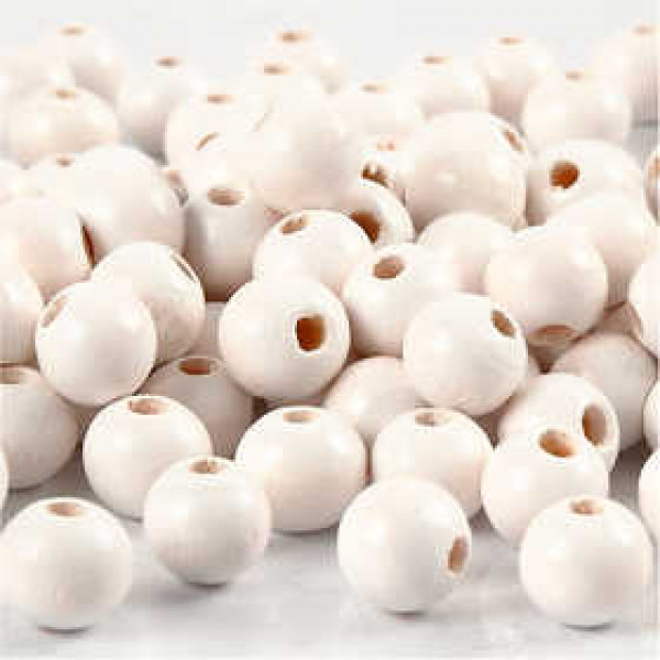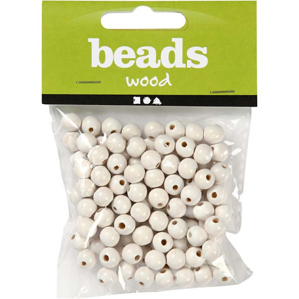 Wooden Beads, D: 8 mm, hole size 2 mm, 15 g, white [HOB-570492]