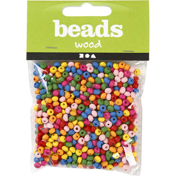 Wooden Beads Mix, D: 4 mm, hole size 1-1.5 mm, 15 g, asstd colours [HOB-571070]