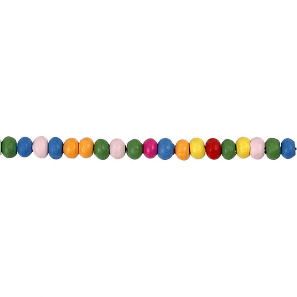 Vibrant mix of brightly coloured round wood beads with a matt finish.
