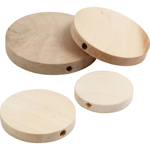 Flat wooden button with a hole running through centre.