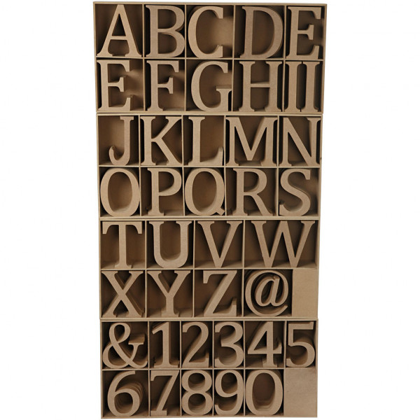 Wooden Letters, Numbers And Symbols, H: 8 cm, thickness 1.5 cm, 240 pcs, MDF [HOB-56359]