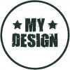Wood mounted, black rubber stamp with motif saying "My Design".